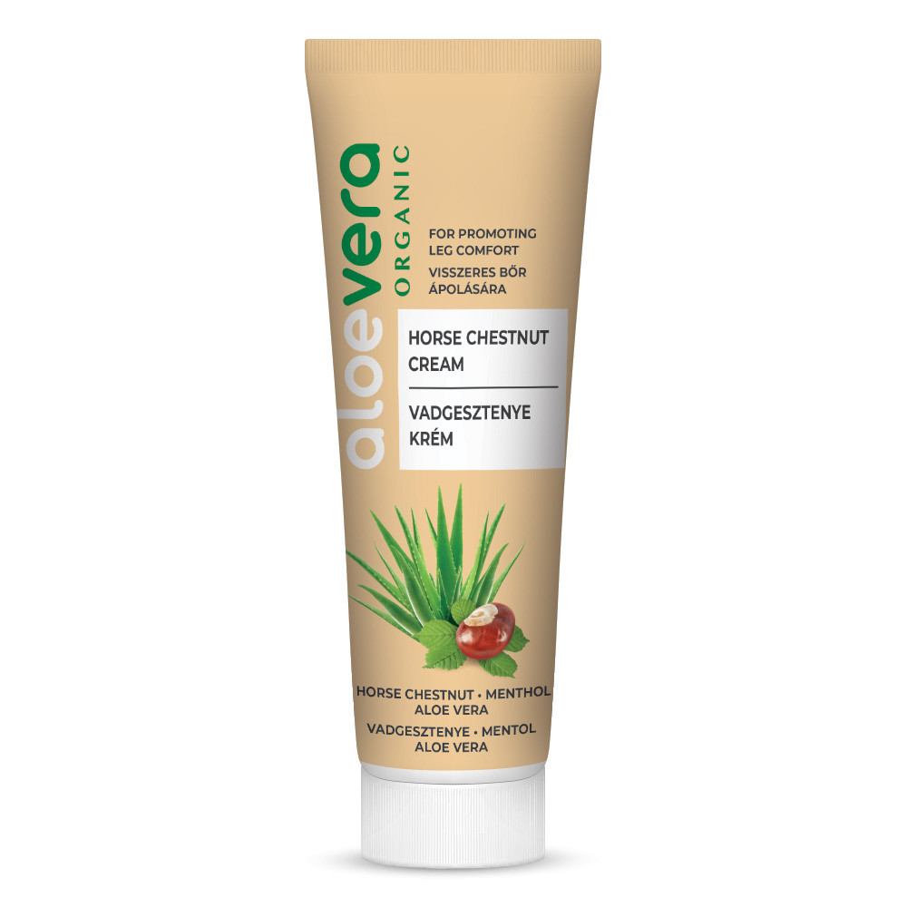 Vadgesztenye-kivonatot tartalmazó lábápoló krém 100%-ban stabilizált organikus Aloe Vera lével és kellemesen hűsítő érzetet adó mentollal. Visszeres, seprűvénás bőrfelületre és fáradt, feszülő lábak ápolására ajánlott.