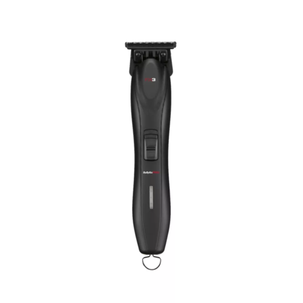 A BaBylissPRO FX3 vezetékkel/vezeték nélküli trimmer nagy nyomatékú, kefe nélküli motorral van felszerelve. DLC/titán „zero gap”, 360 fokban forgatható, exponált T-pengével rendelkezik, így tökéletes minden részletmunkához. A lítium-polimer akkumulátor 3 órás üzemidőt biztosít teljes feltöltéssel. Az ultravékony, ergonomikus ABS ház, karbon textúrájú betétekkel gyönyörűvé és esztétikussá teszi ezt a kontúrtnyírót.