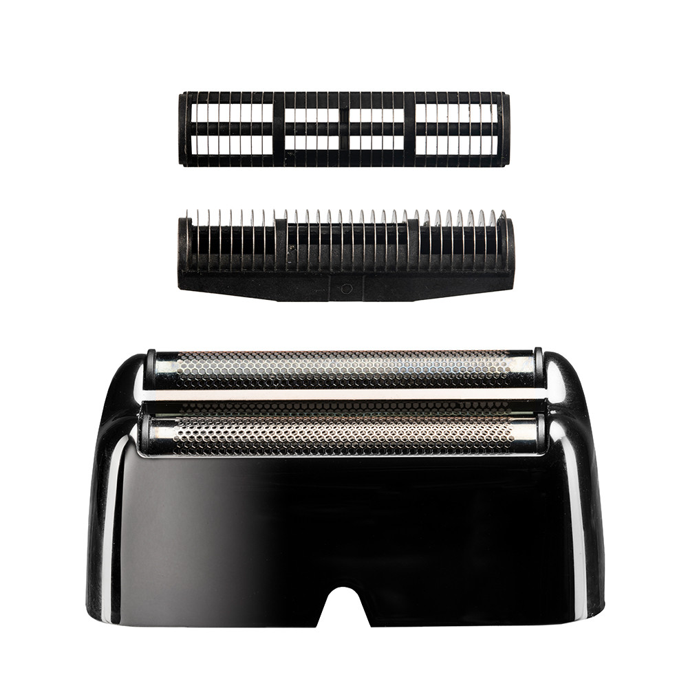 A borotva cserefóliáink és pengéink fekete titán kettős fóliák. Ez a készlet két szimpla pengét és egy dupla fóliás borotvafejet tartalmaz, amely ultra pontos borotválkozást biztosít a nyakon, az arcon és a hajvonal körül.