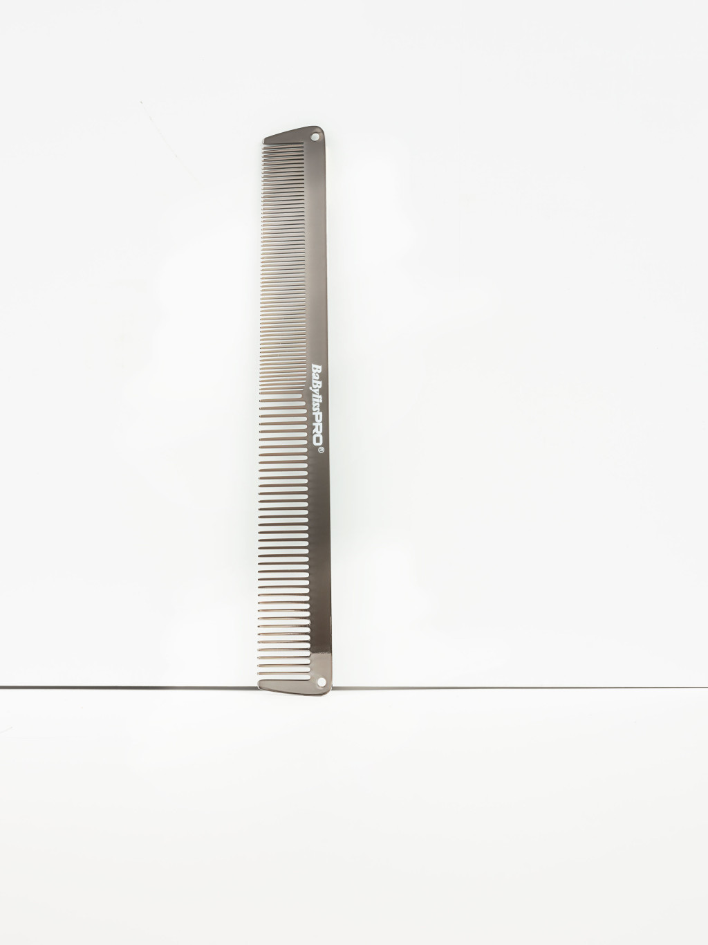 Klasszikus fém fésű fodrászatba, bőr hatású tokkal. Ritka és sűrű fokú rész egyaránt van rajta, így aprólékos és lendületes fésülésre is ugyanúgy alkalmas, mint ahogyan a legdurvább és sűrűbb hajtól a legritkább és finom selymeshez egyaránt.