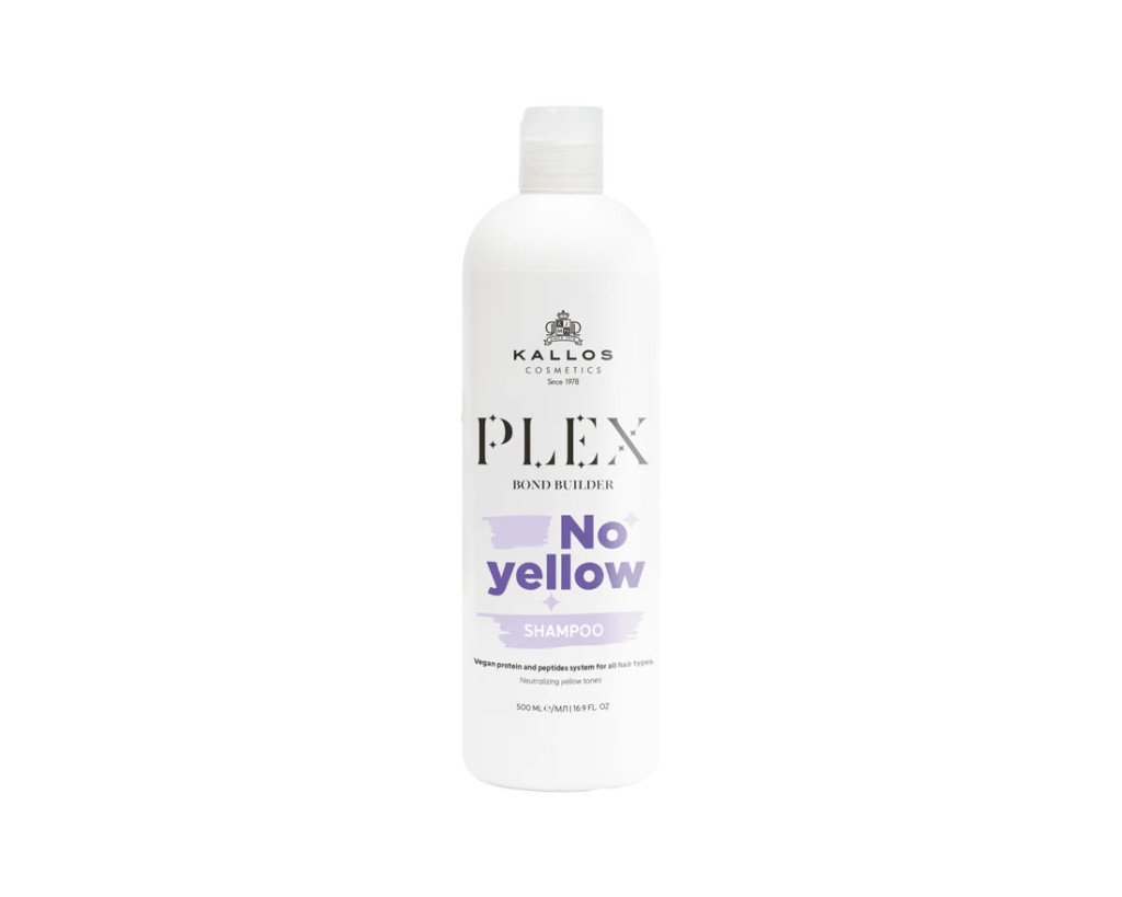 Kallos Plex Bond Builder NO YELLOW sampon a sárga tónusok ellen, növényi proteinnel és peptid komplex-szel 1000ml