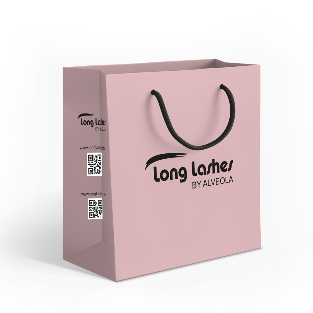 Tedd termékeladásaidat emlékezetessé! Pillaápoló termékeid értékesítése során használd elegáns Long Lashes papírtáskánkat, mely exkluzív megjelenése mellett információt is hordoz kedvenc szempillamárkádról. A rajta elhelyezett QR kód segítségével vendégeid akár otthon is megismerkedhetnek a Long Lashes koncepciójával megkönnyítve későbbi munkádat.