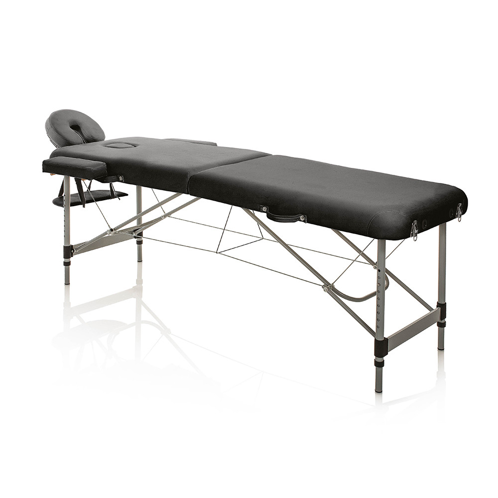 Master Alluminium masszázságy fekete színben, masszív alumínium vázzal. Állítható lábakkal rendelkezik ez a masszázs ágy. Összecsukható kivitel, nagy teherbírással. Ultrakönnyű súly, a könnyű hordozhatóságért. A hordtáska és a karfák mind tartozékai ennek a masszázságynak.