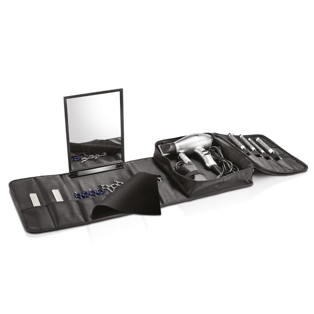 Félig merev fodrász táska, praktikus belső rekeszekkel. Ez a fodrász táska elég strapabíró ahhoz, hogy ellenálljon a mindennapos használatnak és a gyakori utazásoknak. A fodrász táskák kifejezetten fodrász szakemberek számára készültek.