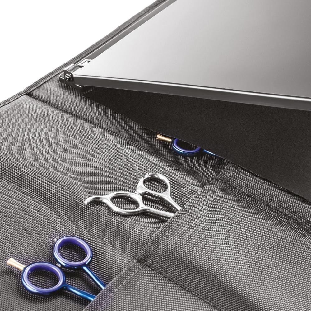 Félig merev fodrász táska, praktikus belső rekeszekkel. Ez a fodrász táska elég strapabíró ahhoz, hogy ellenálljon a mindennapos használatnak és a gyakori utazásoknak. A fodrász táskák kifejezetten fodrász szakemberek számára készültek.