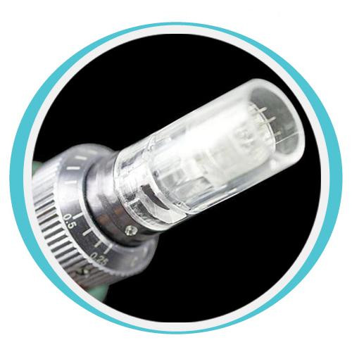 12 tűs mezoterápiás fej automata mezoterápiás toll-hoz. A kezelőfej megerősített orvosi acélból készült tűkkel rendelkezik a készülékbe helyezve 0,25-2mm-es behatolási mélységet tesz lehetővé. A mezoterápiás kezelésekhez egy vendéghez csak egy fej használható.