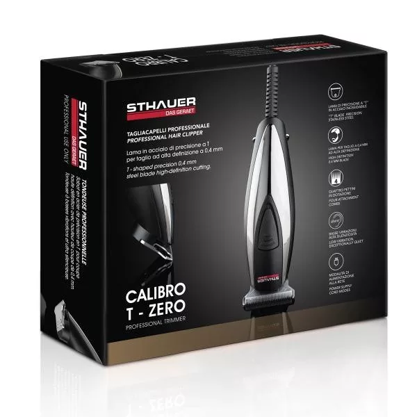 Sthauer Calibro T-Zero professzionális hajnyírógép, ami alacsony vibrációval és nagyon csendesen működik. Ez a professzionális hajnyírógép jól használható a kontúrok, haj és szakáll elkészítéséhez. A 40mm-es "T" fejjel tökéletesen tudjuk formázni a kontúrokat, a nyak és fül körüli részeket és a szakállakat. A nagy sebességű motornak köszönhetően lenyűgöző vágási teljesítménnyel rendelkezik ez a hajnyírógép. A Sthauer márka megbízhatóságot, magas minőséget, kifinomultságot képvisel, professzionális intenzív használatra alkalmas gépeket tervez és gyárt.