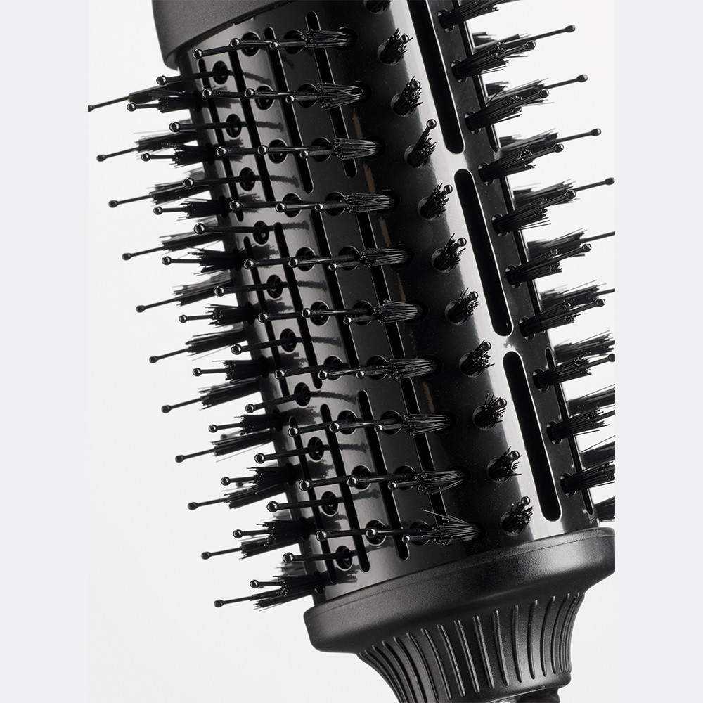 Egyenes frizurákhoz vagy göndör hajhoz. Az Air Brush Ceramic egy forró levegős formázó kefe ergonómikus nyéllel, amely szárítja a hajat, így egyenes vagy göndör frizurát alakíthatunk ki. Három hőmérséklet-beállítással és egyedülálló légáramlási bemeneti nyílásokkal rendelkezik, amelyek fényt és volumenet adnak a hajnak. A rövid tüskés sörték és hosszú szilikon sörték extra emelést adnak a hajtöveknél, a kerámia tengely és az iongenerátor fényesíti a hajat, a lekerekített hegyek pedig masszírozzák a fejbőrt. Az Air Brush Ceramic ovális kialakítása és a kombinált sörték volumenesebb hatást adnak a hajtöveknél, sima hatást biztosítanak a hajon és formázást adnak a végeken.