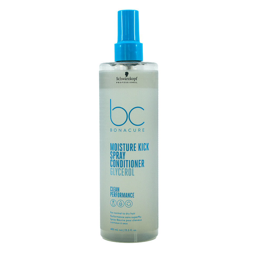 A dehidratált hajnak nincs fénye és rugalmassága, és jellemző rá, hogy rakoncátlan és törékeny. A glicerinnel dúsított Schwarzkopf Professional BC Bonacure CP Moisture Kick kondicionáló spray krémes és vizes fázist ötvöz, amely felrázáskor könnyű emulzióvá alakul. A hajszálaknak egy adag nedvességet biztosít, és segít kisimítani a felszínüket.