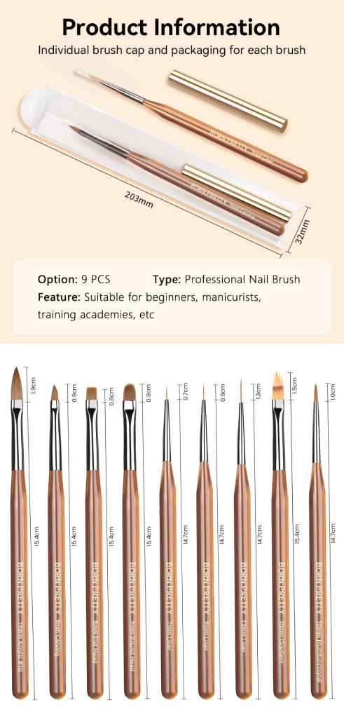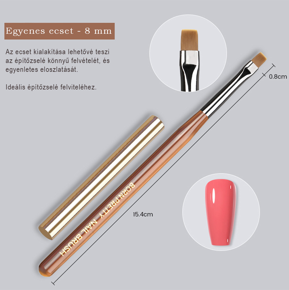 Elegáns megjelenésű, minőségi BORN PRETTY egyenes végű zselés ecset kupakkal